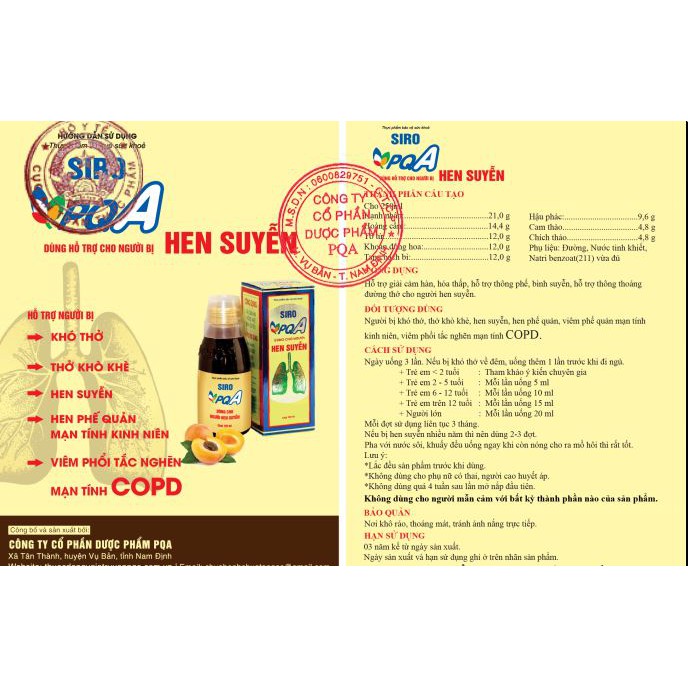 PQA Hen Suyễn - Hỗ trợ người bị khó thở, thở khò khè, hen suyễn, viêm phổi tắc nghẽn mạn tính COPD