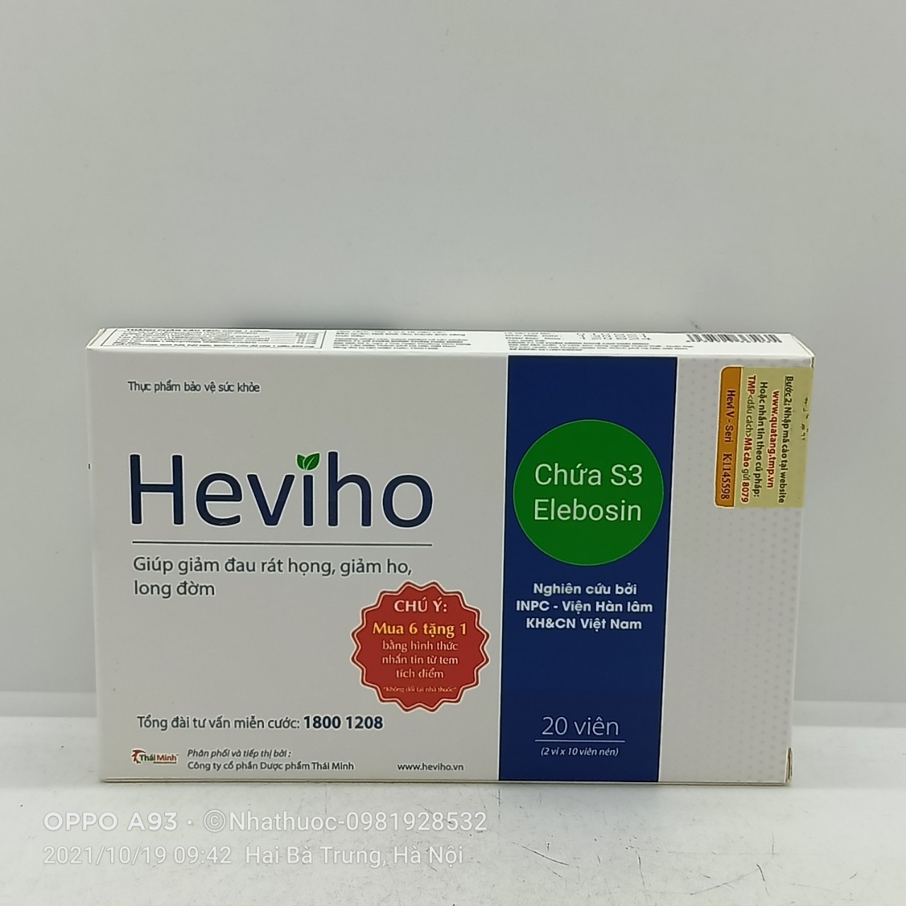 [Chính hãng] Heviho giảm đau rát họng, ho, đờm hộp 20 viên