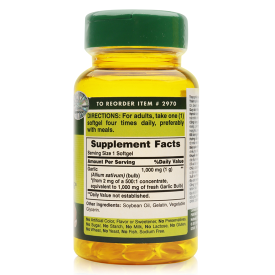 Từ lâu, tỏi là dược phẩm cổ truyền chuyên tr/ị những chứng b/ệnh về tiêu hóa, cảm sốt. Các nhà nghiên cứu phát hiện ra rằng “Các dân tộc vùng Tây Á, Trung Đông thường rất ít khi bị dịch cúm, tỷ lệ ung thư thấp là do có thói quen dùng tỏi. Tuy nhiên, một số người không thể dùng trực tiếp tỏi được bởi mùi cay nồng của nó. Tận dụng những ưu điểm của tỏi trong việc chữa b/ệnh và bảo vệ sức khỏe, thương hiệu Puritan’s Pride của Mỹ cho ra đời viên uống tinh dầu tỏi Puritan’s Pride Garlic Oil 5000mg nhằm bảo vệ hỗ trợ tim mạch, tiêu hóa.