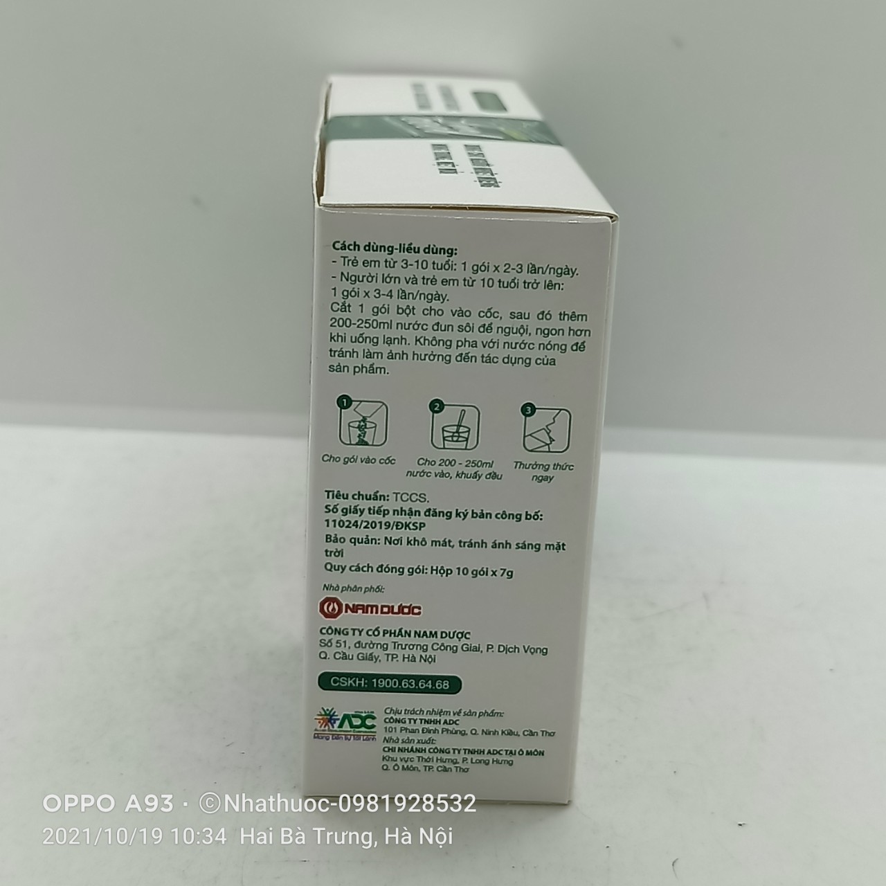 Đối Tượng Sử Dụng: Người bị nhiệt miệng do thiếu vitamin C, mệt mỏi do nắng nóng & sức đề kháng kém Người bị nóng trong, dị ứng, mề đay, chán ăn & nước tiểu vàng do suy giảm chức năng gan Người hay sử dụng sản phẩm khác ảnh hưởng đến chức năng gan Cách Dùng: Trẻ em từ 3 - 10 tuổi: 1 gói x 2 - 3 lần/ngày Người lớn & trẻ em từ 10 tuổi trở lên: 1 gói x 3 - 4 lần/ngày Cắt 1 gói bột cho vào cốc, sau đó thêm 200 - 250ml nước đun sôi để nguội & ngon hơn khi uống lạnh Không pha với nước nóng để tránh làm ảnh hưởng đến tác dụng của sản phẩm *Lưu ý: - Tác dụng của sản phẩm tùy thuộc vào cơ địa hấp thu của từng người