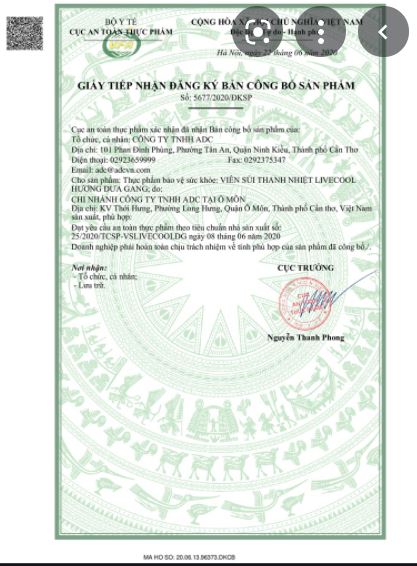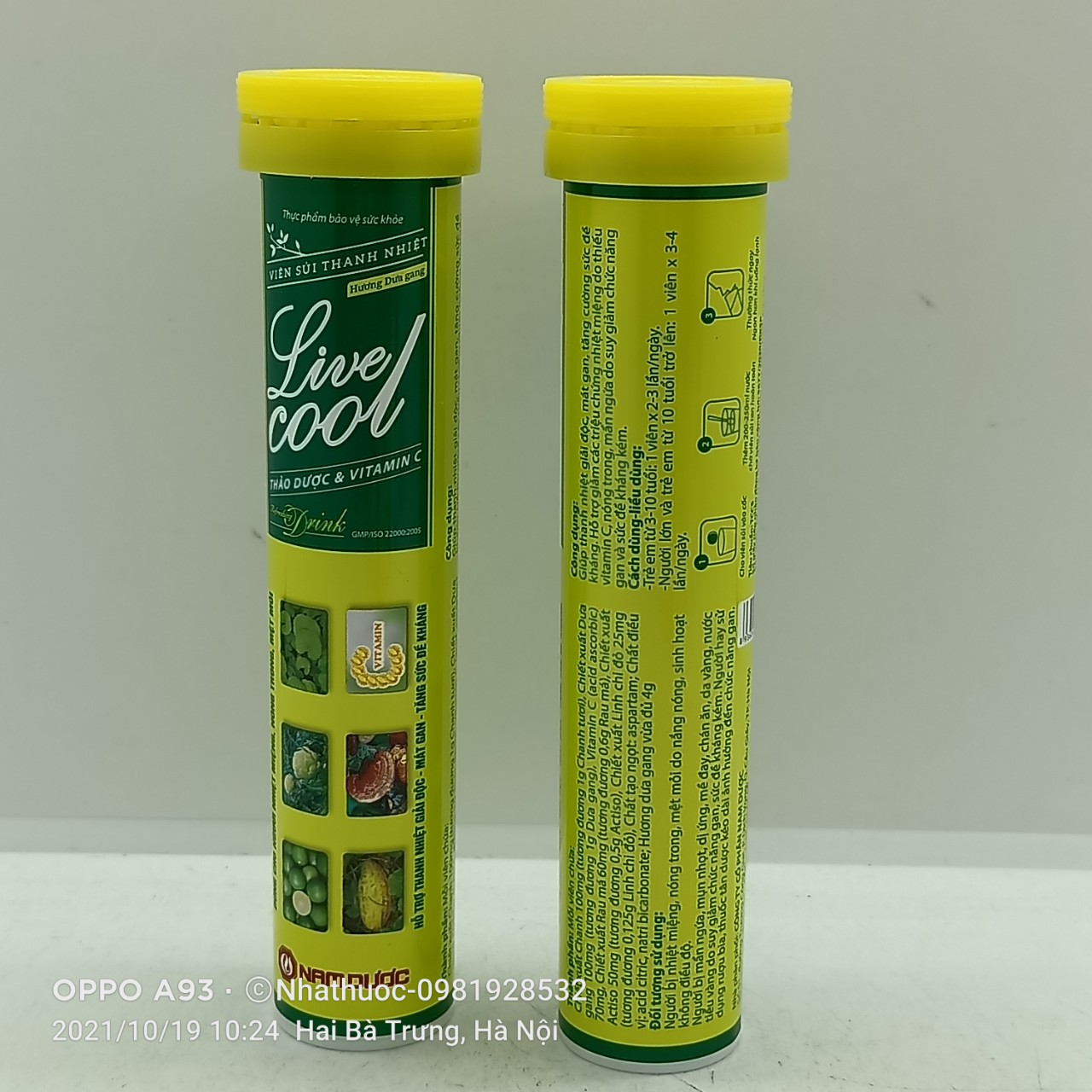 1:Thành phần Viên Sủi thanh nhiệt Live Cool Nam Dược Mỗi viên chứa chứa: Chiết Xuất Chanh..............................100mg Chiết xuất dưa gang.......................................100mg Chiết xuất Vitamin C ........................................70g Chiết xuất Actiso.........................................50g Chiết xuất linh chi đỏ....................................0.08g Chất tạo ngọt: isomalt....................................vđ 4g 2:Công dụng Bột tan thanh nhiệt Live Cool Nam Dược - Giúp thanh nhiệt giải độc, mát gan, tăng cường sức đề kháng. - Hỗ trợ giảm các triệu chứng nhiệt miệng, nóng trong, mụn nhọt, mẩn ngứa do suy giảm chức năng gan và sức đề kháng kém. 3:Đối tượng sử dụng Bột tan thanh nhiệt Live Cool Nam Dược - Người bị nhiệt miệng, nóng trong, dị ứng, mề đay, chán ăn, mệt mỏi, da vàng, nước tiểu vàng do suy giảm chức năng gan. - Người hay sử dụng rượ-u b-ia, thuố-c tâ-n dư-ợc kéo dài ảnh hưởng đến chức năng gan Quy cách đóng gói: Tuýp 16 Viên