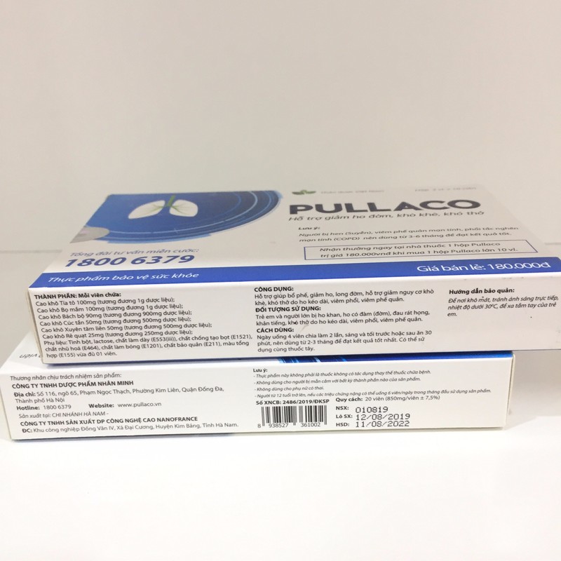 Viên Uống PULLACO giúp bổ phế, long đờm, giảm ho, hỗ trợ giảm nguy cơ khò khè, khó thở do ho kéo dài, viêm phổi, viêm phế quản