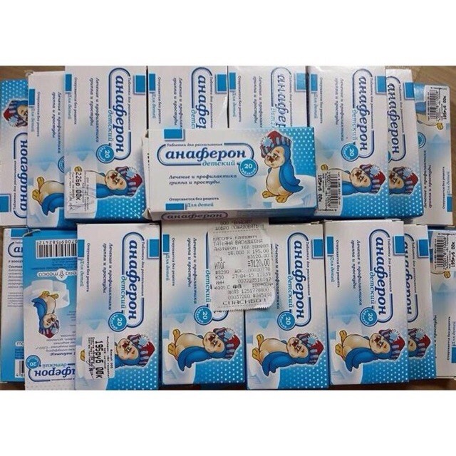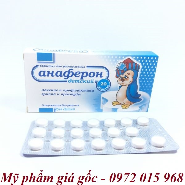 Anaferon là sản phẩm cho trẻ em từ 1 tháng tuổi trở lên. Sản phẩm được đóng hộp 20 viên, dùng để ngậm.