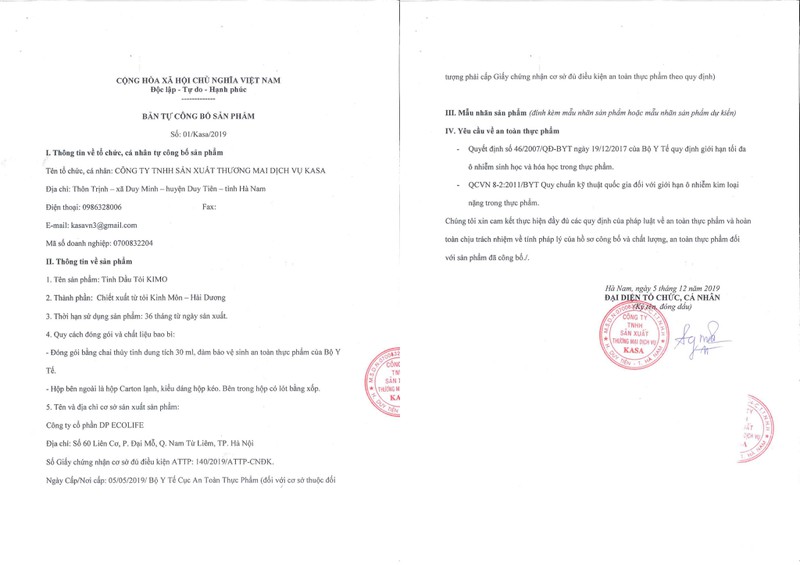 Tinh dầu tỏi Kimo là thương hiệu của người Kinh Môn