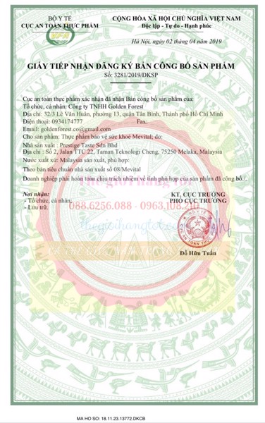 Mà không đưa ra bằng chứng thì không ai tin vì vậy dưới đây là bảng công bố sản phẩm Vital emzyme do cơ quan chức năng Việt Nam cấp.