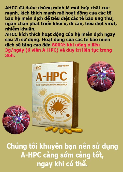 AHCC (Active Hexose Correlated Compound) 500mg dạng cốmgồm : chiết xuất hệ sợi nấm Basidiomycete: 45%, Dầu hạt cải hydro hóa: 35%, Dextrin: 12%, Microcrystalline cellulose: 5%, Alpha-cyclodextrin:3%