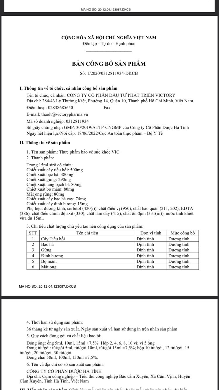 Siro VIC (Hộp 12 gói) - Hỗ trợ giảm ho, đau đầu, h...