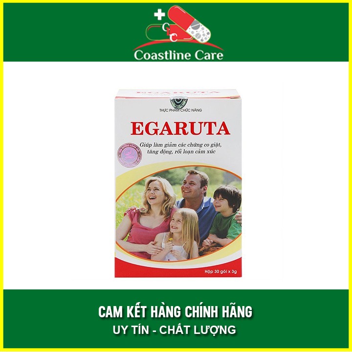 Quy cách Cốm EGARUTA:Hộp 30 gói x 3gThành phần Cốm EGARUTA:An Tức Hương: 105mgTaurine: 100mgCao Câu Đằng: 75mgMgCl2: 30mgGABA: 25mg