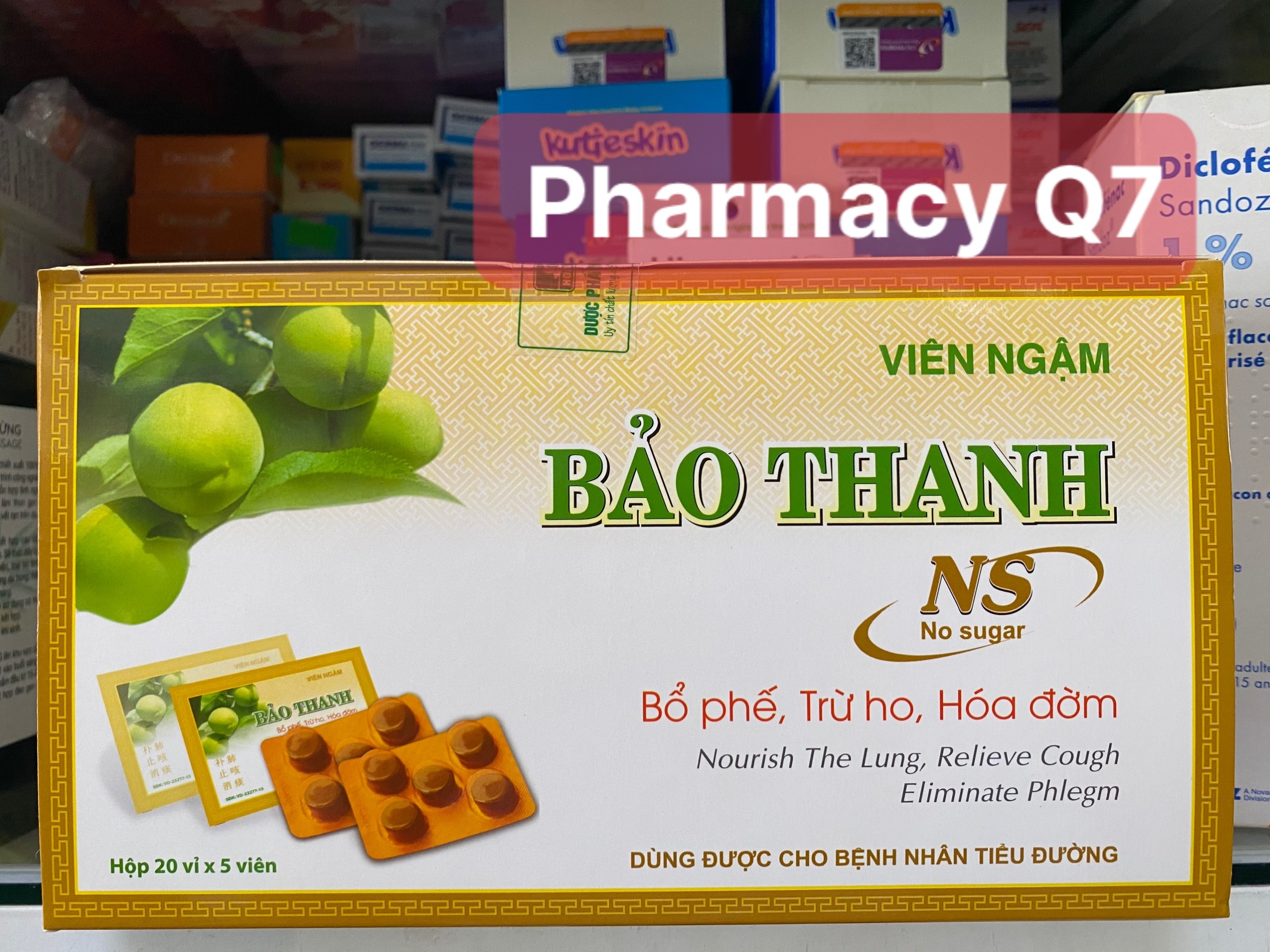 Viên ngậm Bảo Thanh không đường giúp bổ phế, trừ ho, hóa đờm, được bào chế dưới dạng kẹo ngậm Lozenger, không chứa đường, thích hợp cho người bị tiểu đường.