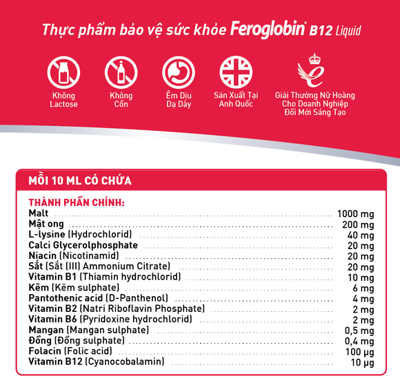 Siro bổ máu FEROGLOBIN B12 Liquid- Hỗ trợ tăng tạo máu, hỗ trợ nâng cao sức đề kháng - HÀNG CHÍNH HẪNG - CÓ TEM CHÍNH HÃNG - Chai 200 ml - KÈM QUÀ TẶNG