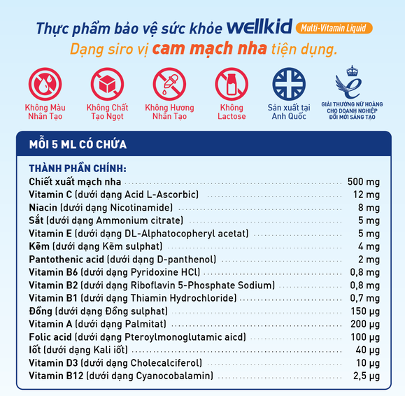 Siro bổ WELLKID Multi-Vitamin Liquid – Hỗ trợ Nâng cao sức đề kháng - HÀNG CHÍNH HÃNG - CÓ TEM CHÍNH HÃNG - Chai 150 ml - KÈM QUÀ TẶNG
