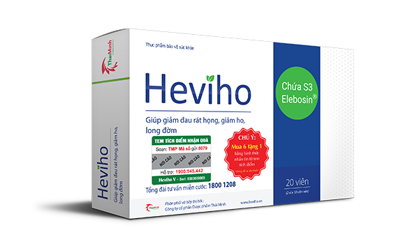 Viên uống Heviho với cơ chế kháng viêm từ S3-ELEBOSIN được nghiên cứu bởi Viện Hàn lâm KH&CN Việt Nam. Sản phẩm ngăn chặn triệt để quá trình viêm, giúp kháng khuẩn ở đường hô hấp. Ngoài ra, Heviho giúp xử lý nhanh chóng tình trạng đau, nóng rát cổ họng, ho khan, ho có đờm, vướng họng, khó nuốt.