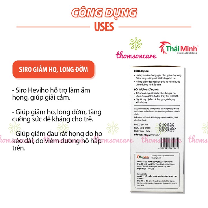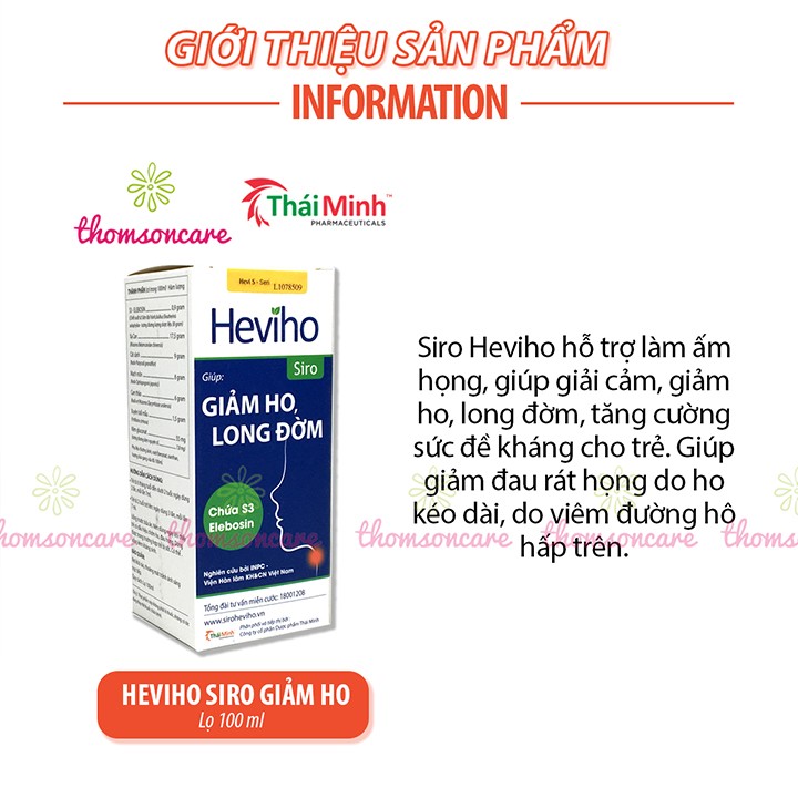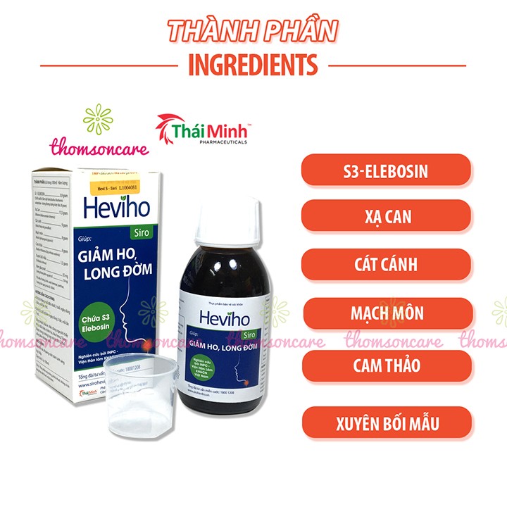Siro giảm ho Heviho lọ 100ml giảm đau họng thanh quản cấp mãn tính khan tiếng ho khan có đờm xanh đặc khó thở 1 2 tuần lâu ngày không khỏi cho trẻ em người lớn bị cảm ho khi thay đổi thời tiết thành phần cam thảo và dược liệu tăng sức đề kháng
