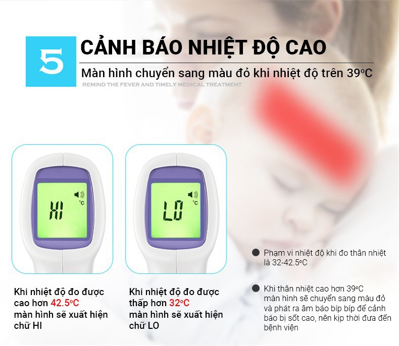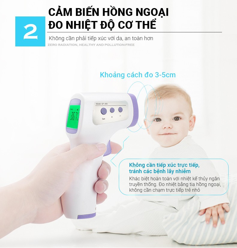 - Khoảng cách đo nhiệt : 3 - 5cm