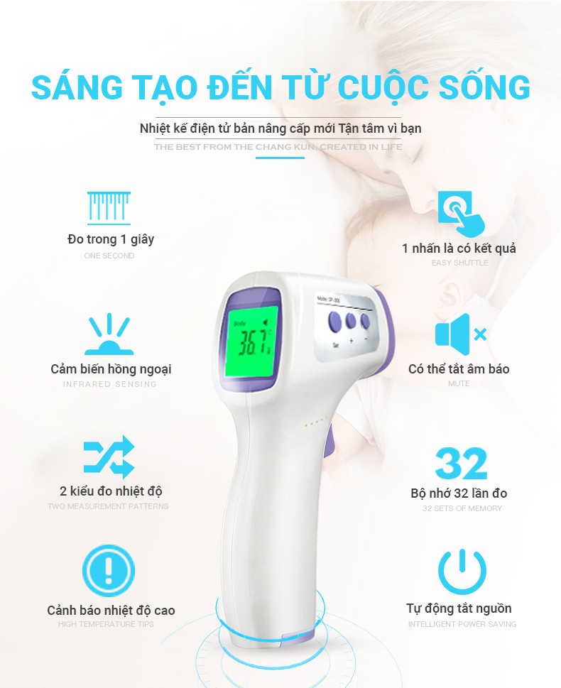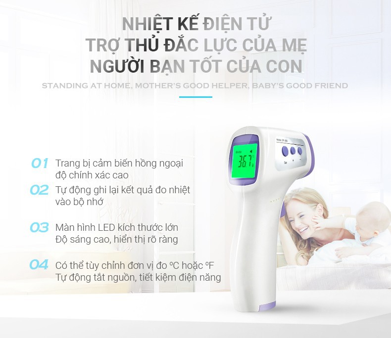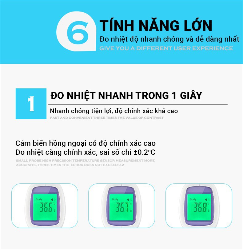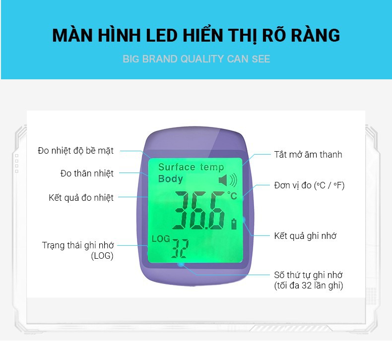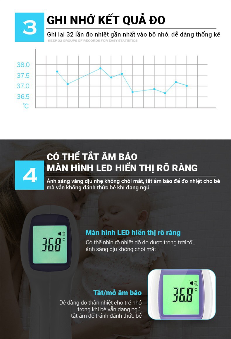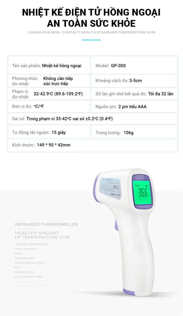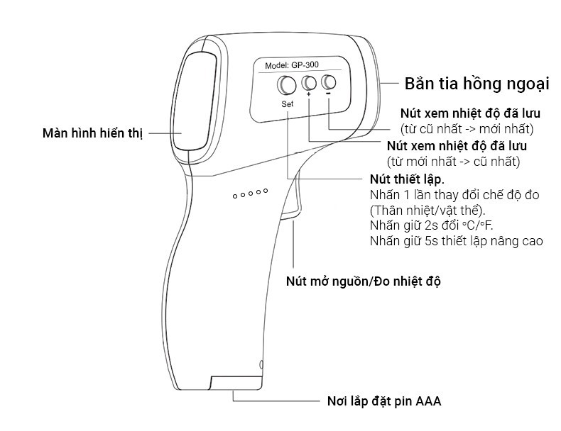 - Chức năng : Đo thân nhiệt người / Đo nhiệt độ vật thể