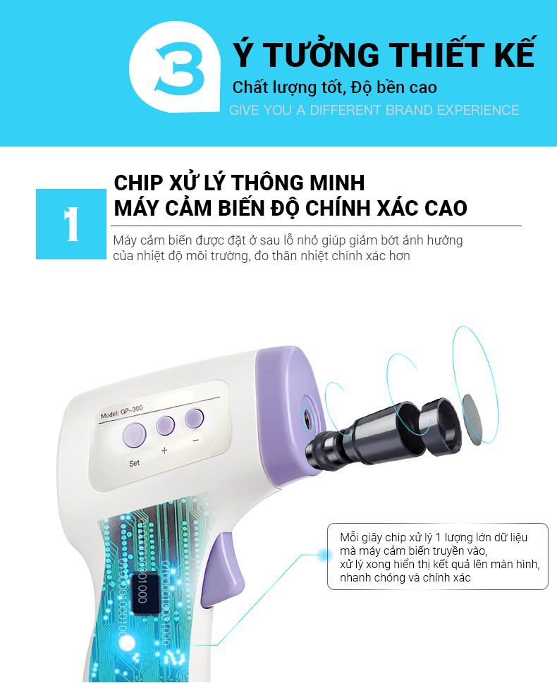 Nhiệt kế hồng ngoại điện tử Cát Thái GP-300, đo nhiệt độ nhanh chóng không cần chạm, có thể ghi nhớ đến 32 lần dễ dàng so sánh, hiển thị kết quả với 3 màu thông minh tiện dụng đa năng dễ mang theo