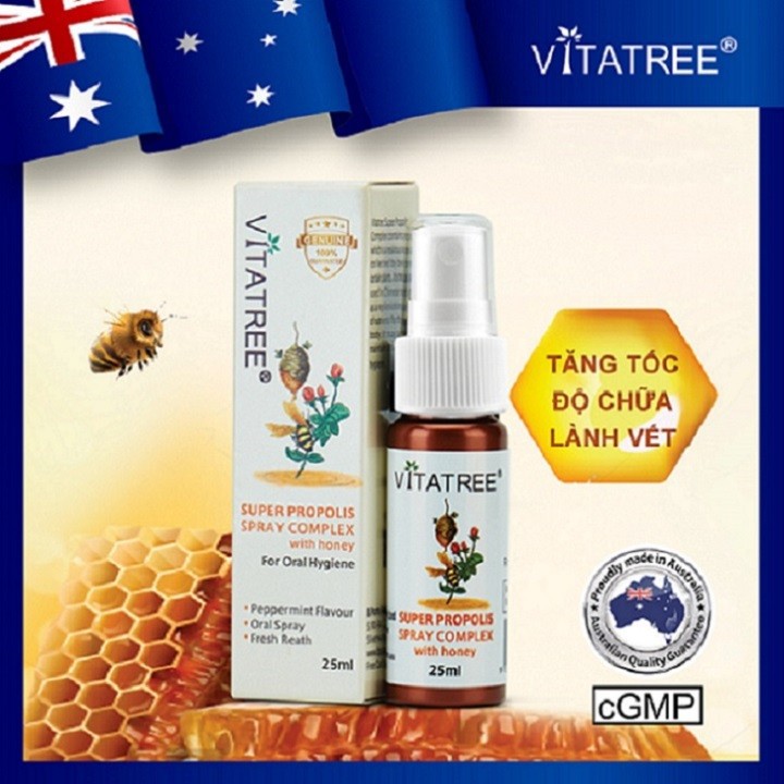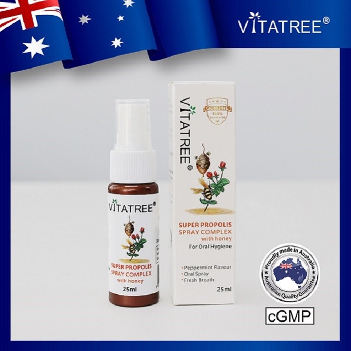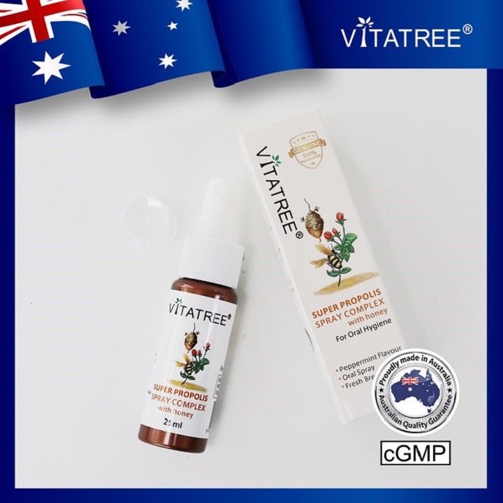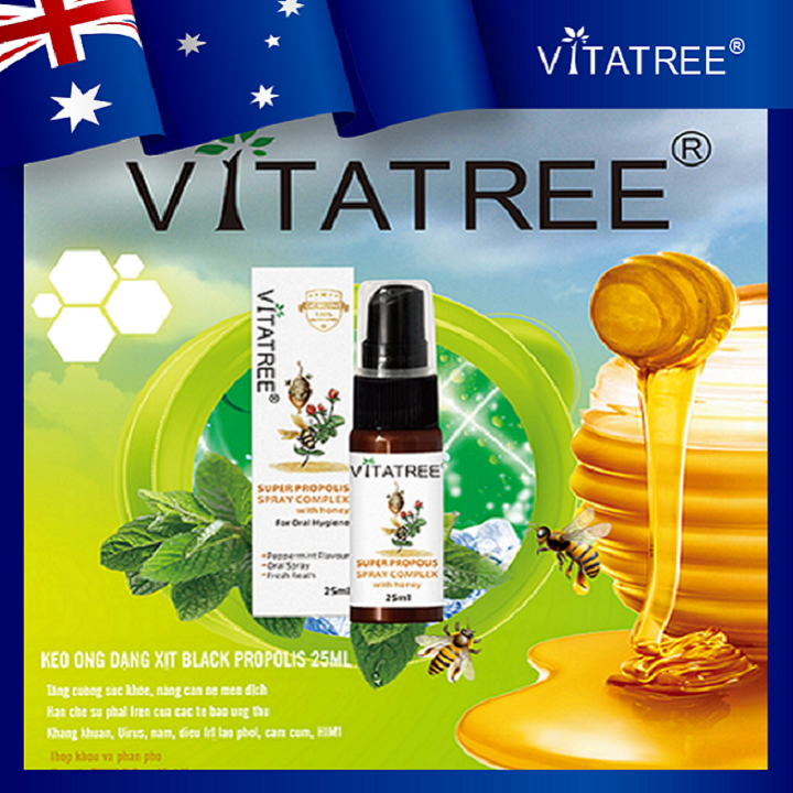 Xịt họng keo ong Vitatree Bluepure Super Propolis Spray Complex with honey 25ml