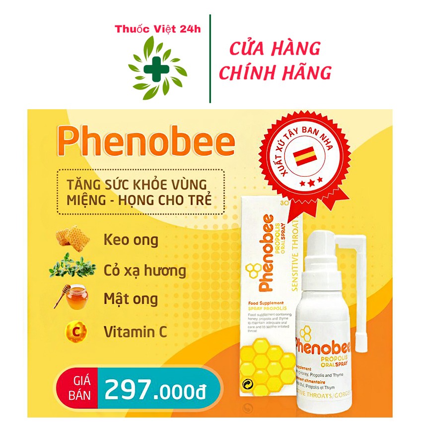 Xịt Họng Phenobee Propolis Oral Spray (Chai 30ml) - Giúp Làm Dịu Cơn Ho & Viêm Miệng - thuocviet24h