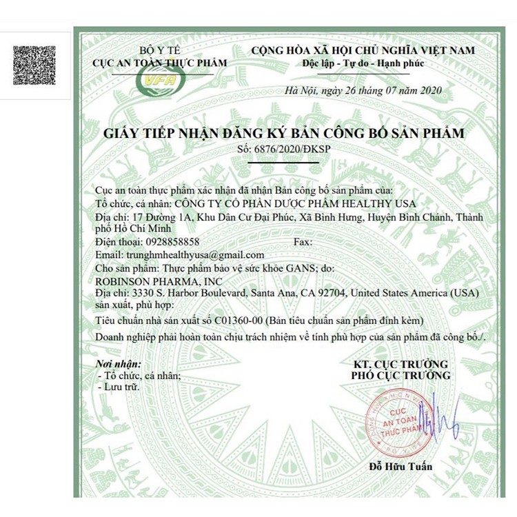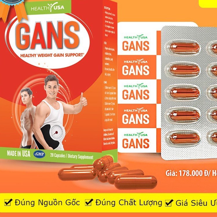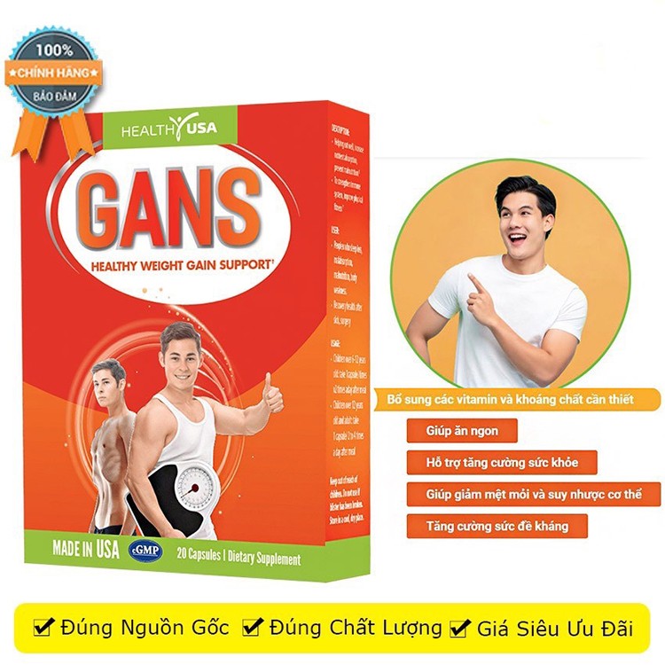 Quy Cách HEALTHY USA GANS Healthy Weight Gain Support:Hộp 2 vỉ x 10 viênThành Phần HEALTHY USA GANS Healthy Weight Gain Support:Vitamin A:... 178.000đ