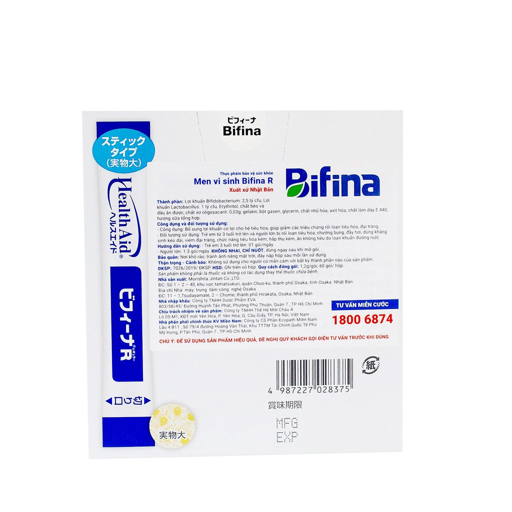 Men Vi Sinh Bifina R - Nhật Bản - Hộp 60 Gói - Bổ Sung Lợi Khuẩn Có Lợi Cho Tiêu Hóa.