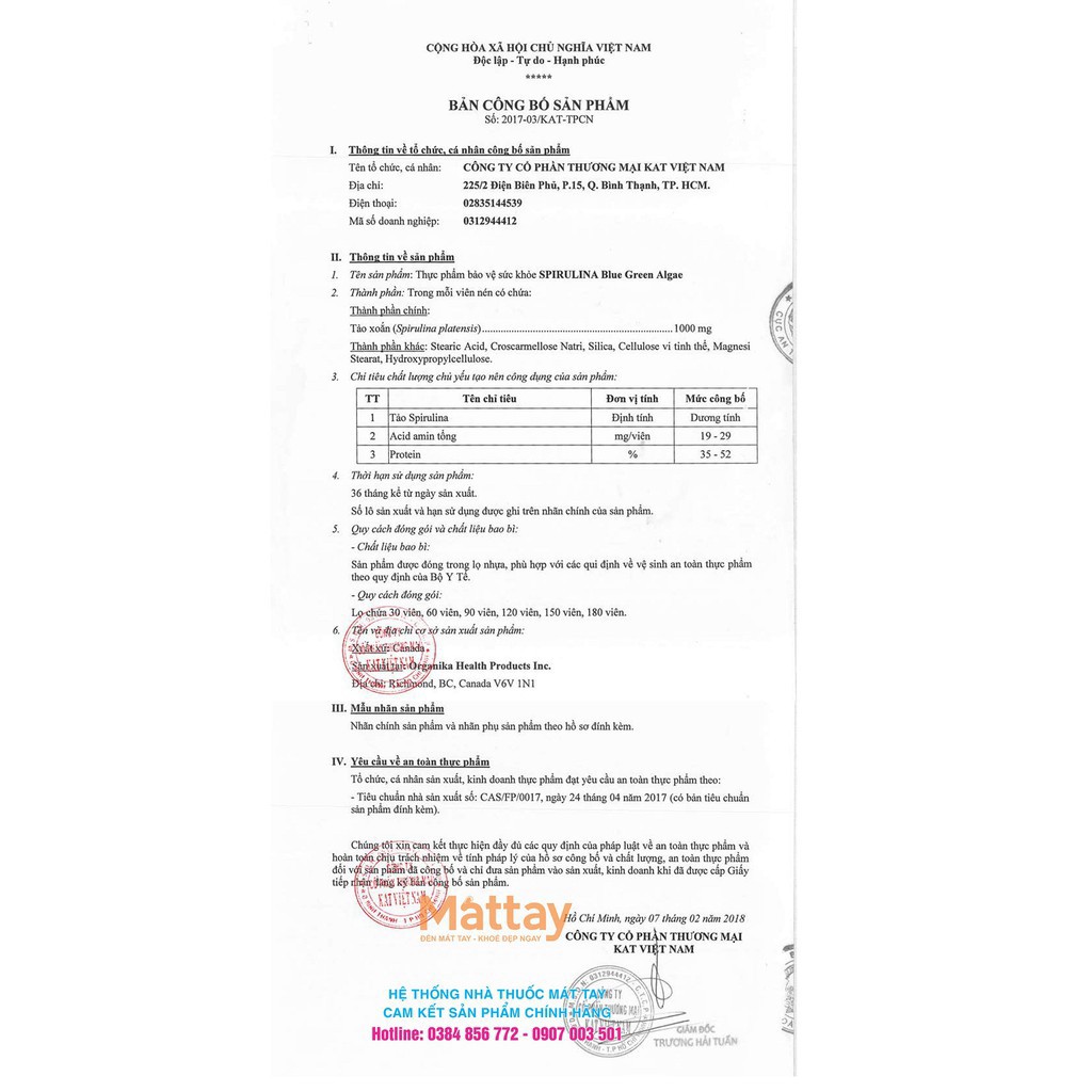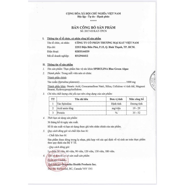 Spirulina - Organika - Chai 90 Viên - Tăng Sức Đề...