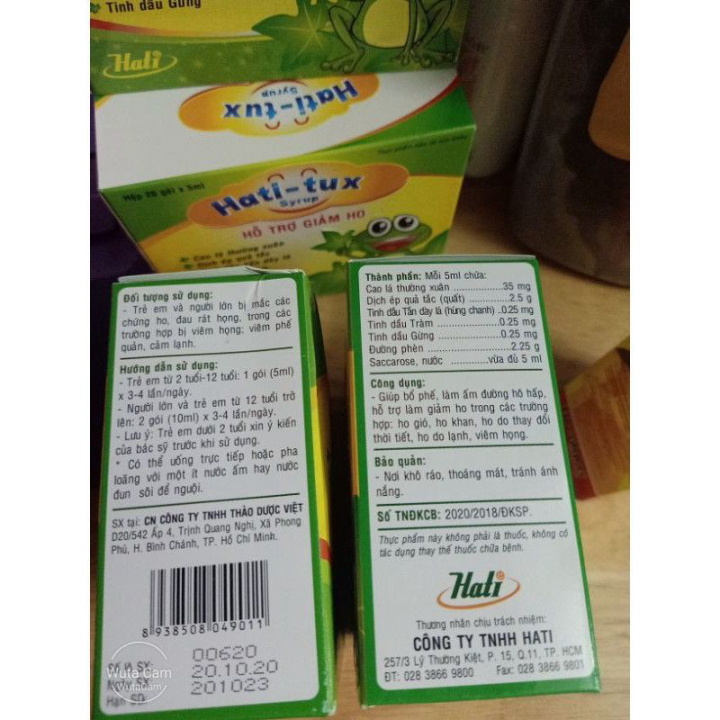 Siro ho con ếch Hati-tux surup (Hati tux), giảm ho, hết khò khòe, đau rát cổ họng