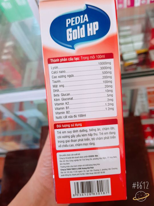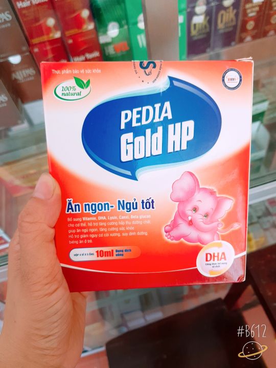 PEDIA GOLD HP – BỔ SUNG VITAMIN DHA LYSIN CANXI BETA GLUCAN – GIÚP BÉ ĂN NGON NGỦ TỐT – TĂNG CƯỜNG SỨC ĐỀ KHÁNGBổ sung các acid amin và các vitamin, khoáng chất hỗ trợ tăng cường chức năng chuyển hóa và hấp thụ chất dinh dưỡng vào cơ thể– Giúp tăng cảm giác ngon miệng, khắc phục tình trạng biếng ăn của trẻ, phòng chống suy dinh dưỡng– Giúp hệ tiêu tiêu hóa của bé khỏe mạnh, giảm đầy bụng, chướng hơi, ăn uống khó tiêu– Hỗ trợ tăng cường sức đề kháng, giúp trẻ phát triển khỏe mạnh– Hỗ trợ giảm nguy cơ còi xương, biếng ăn ở trẻ