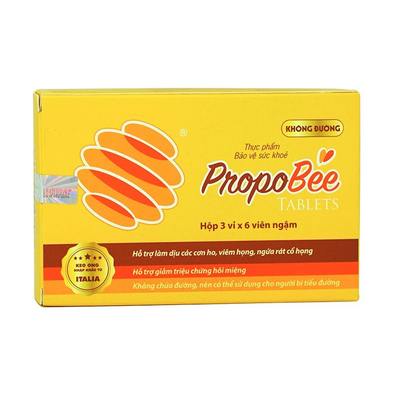 PROPOBEE - Viên ngậm giảm ho, không đường từ keo ong nhập khẩu Ý - Hộp 3 vỉ x 6 viên