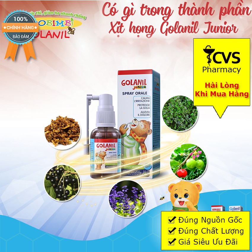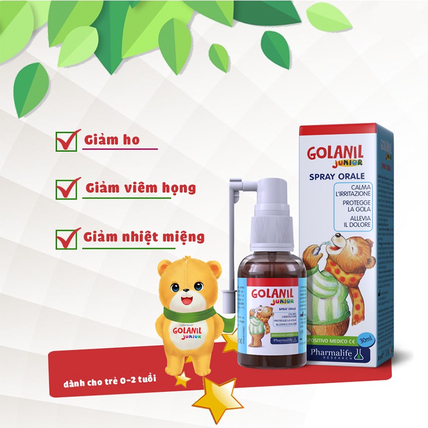 Xịt Họng GOLANIL JUNIOR SPRAY ORALE - Giúp Bảo Vệ Cổ Họng, Giảm Ho Đau Rát Họng