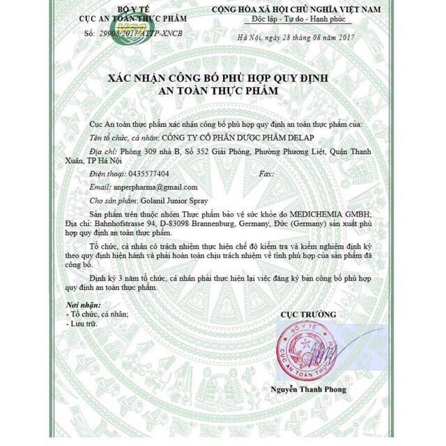 Xịt Họng GOLANIL JUNIOR SPRAY ORALE Giúp Bảo Vệ Cổ Họng, Giảm Ho Đau Rát HọngQuy cách đóng gói:Hộp 1 chai 30ml dạng xịt.M 329.000đ
