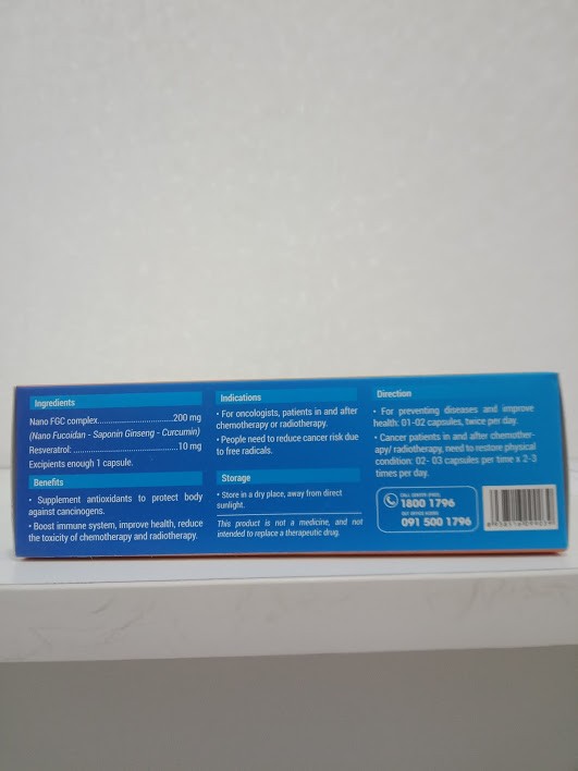 • Phức hệ Nano FGC (Nano Fucoidan – Saponin Ginseng – Curcumin): 200 mg
