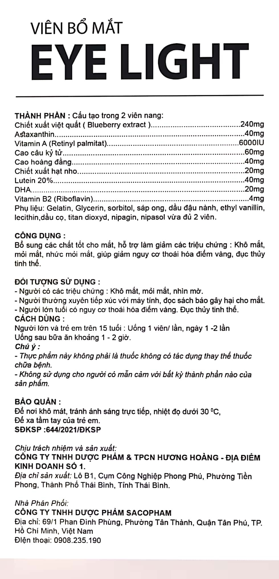 Viên Uống Bổ Mắt Eye Light- Giúp giảm nguy cơ đục thủy tinh thể, giảm mỏi mắt, nhức mắt, mờ mắt
