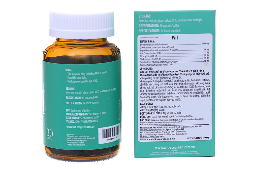 WIT với tinh chất quý Broccophane thiên nhiên giúp bảo vệ, nuôi dưỡng võng mạc và thủy tinh thể từ bên trong, cho mắt sáng khỏe.