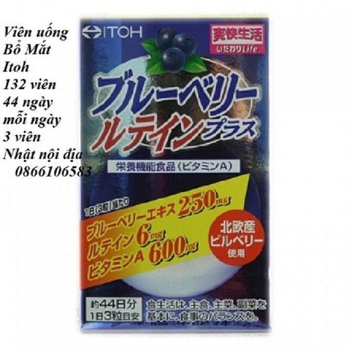 Viên uống bổ mắt việt quất Nhật bản Itoh Blueberry Lutein Plus 132 viên 4987645491065