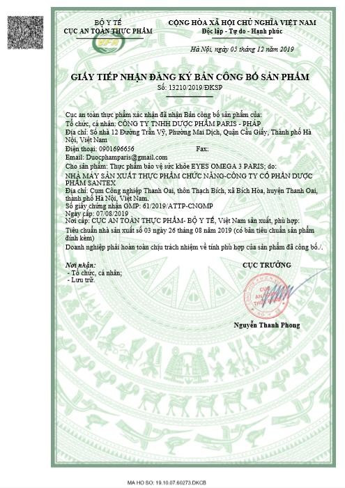 - Giấy phép do bộ y tế cấp Số: 13210/2019/ĐKSP