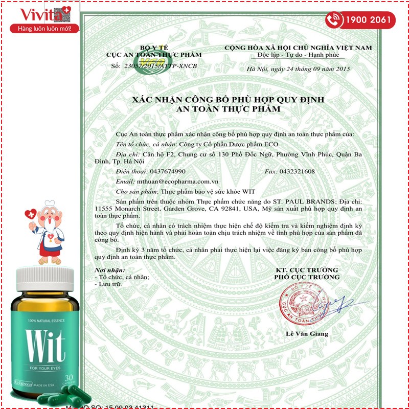 WIT tăng cường thị lực, giảm mờ, mỏi mắt.