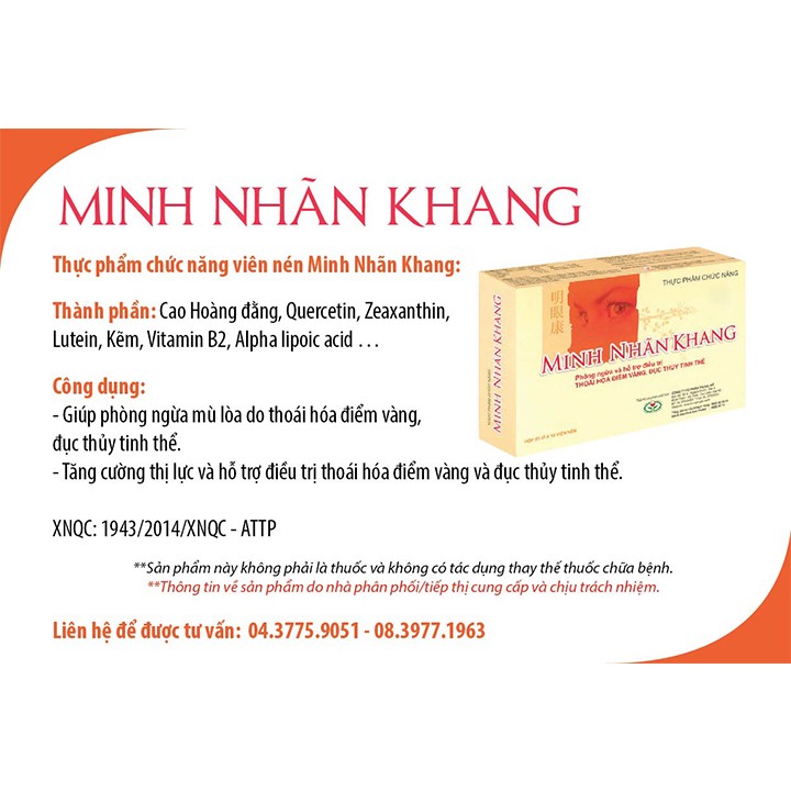 Minh Nhãn Khang - Tăng Thị Lực, Hỗ Trợ Giảm Thoái Hóa Điểm Vàng