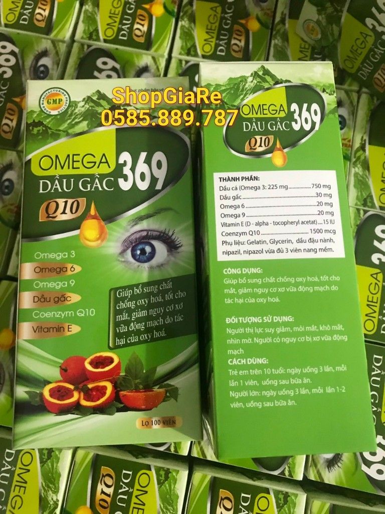 Omega-369 dầu gấc Q10 chứa dầu cá, dầu gấc, bổ sung vitamin làm đẹp da, chống lão hóa, giảm nhức mắt,mỏi mắt, tốt tim mạ