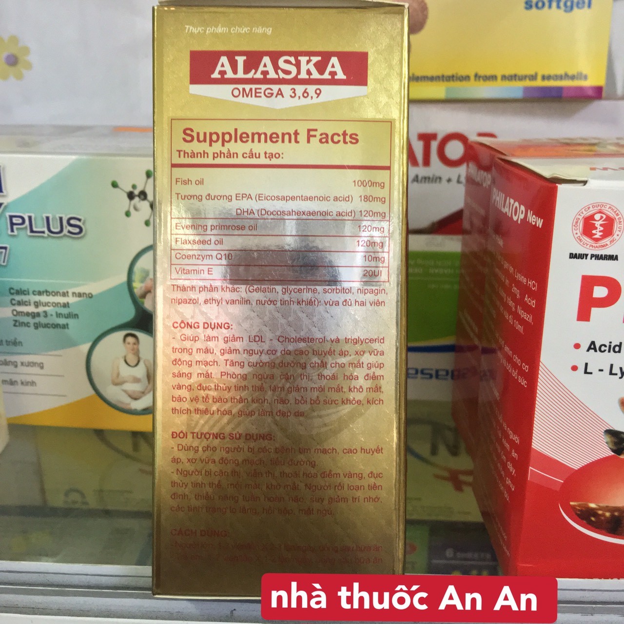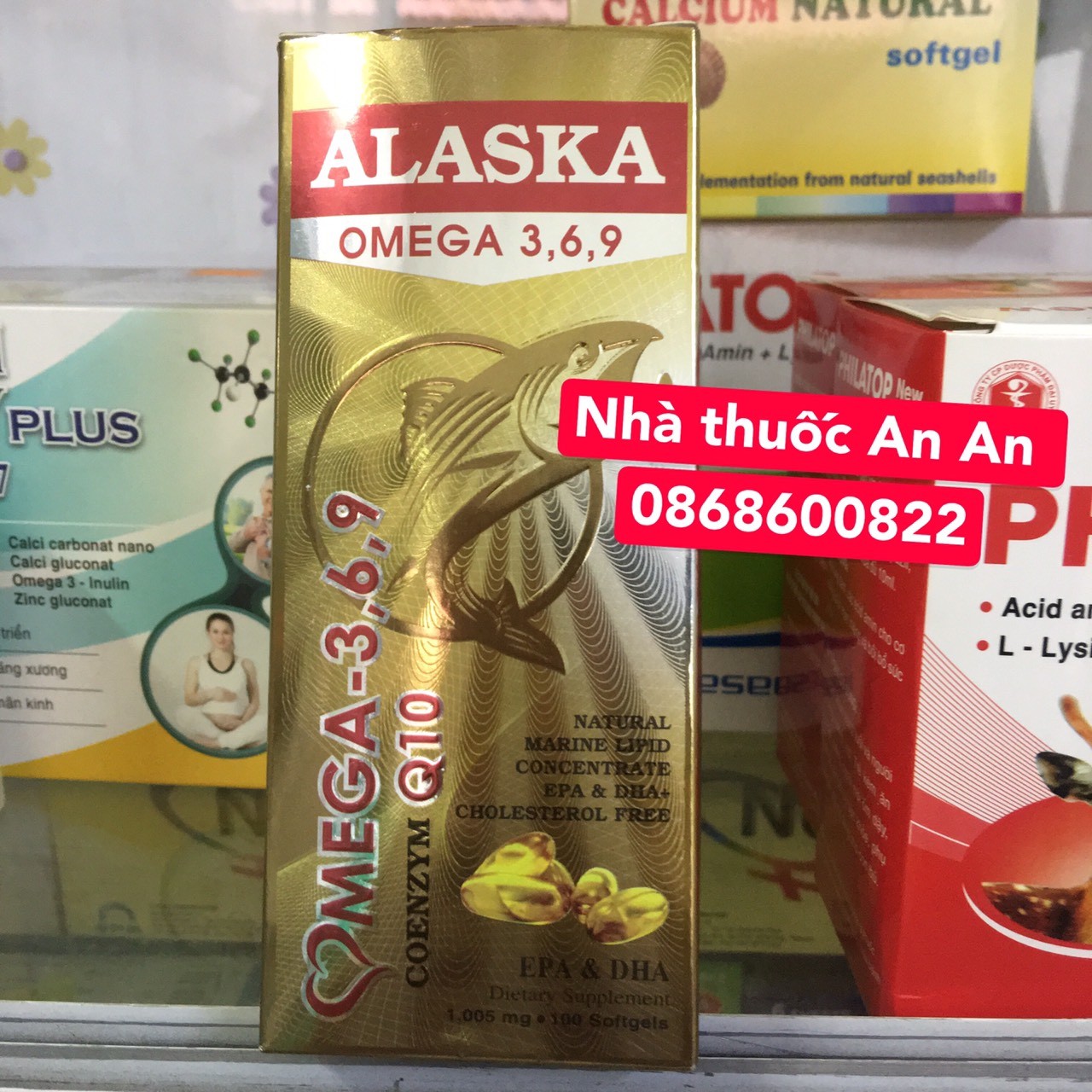 CHÍNH HÃNG, VIÊN UỐNG DẦU CÁ OMEGA369 Alaska Q10 màu vàng hộp 100v, sáng mắt đẹp da