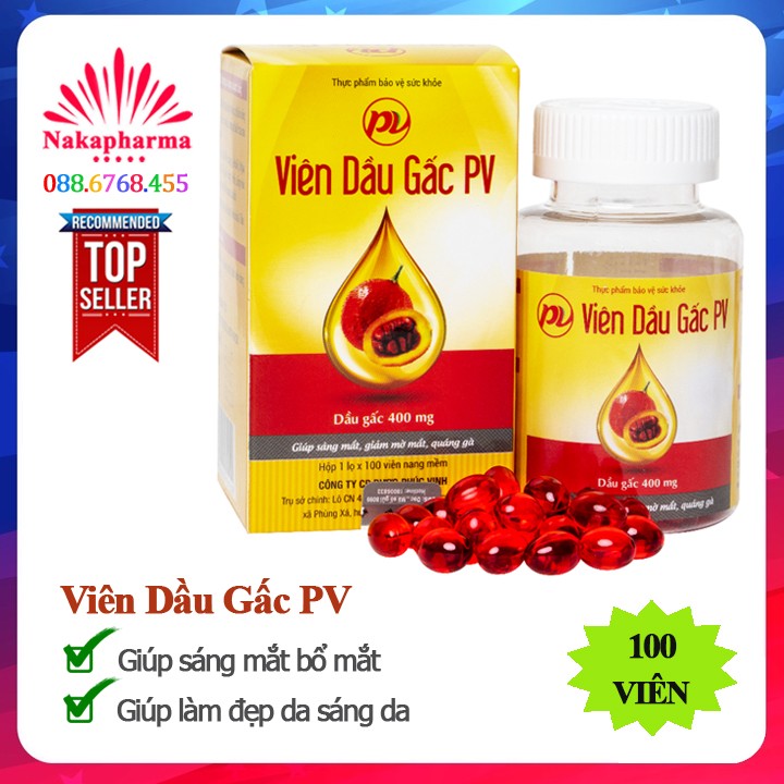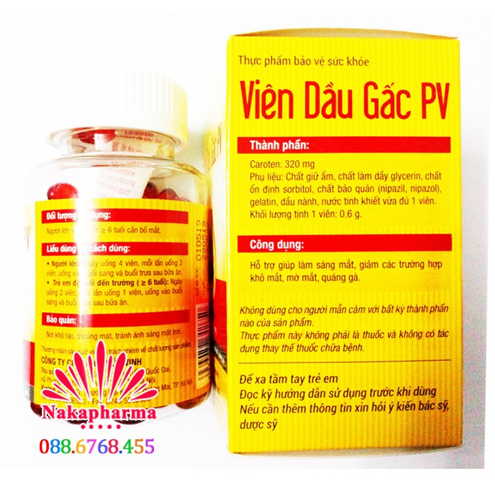 ❤ VIÊN DẦU GẤC PV – GIÚP SÁNG MẮT, BỔ MẮT, NGỪA GIẢM THỊ LỰC, KHÔ MẮT, QUÁNG GÀ, LÀM ĐẸP DA SÁNG DA ⭐⭐⭐NAKA