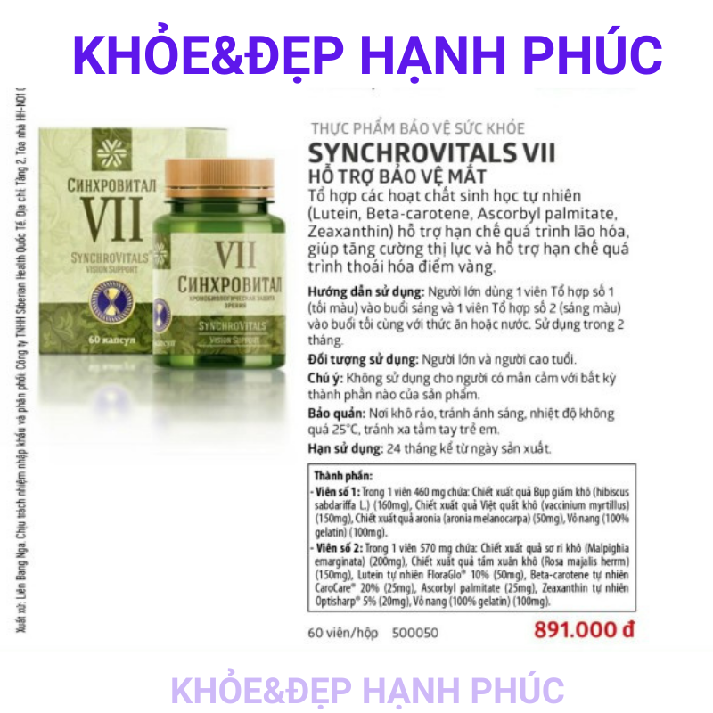 [Hỗ trợ mắt] Syn 7 - Thực phẩm bảo vệ sức khỏe SYNCHROVITALS VII – 60 viên – Date T1/2023