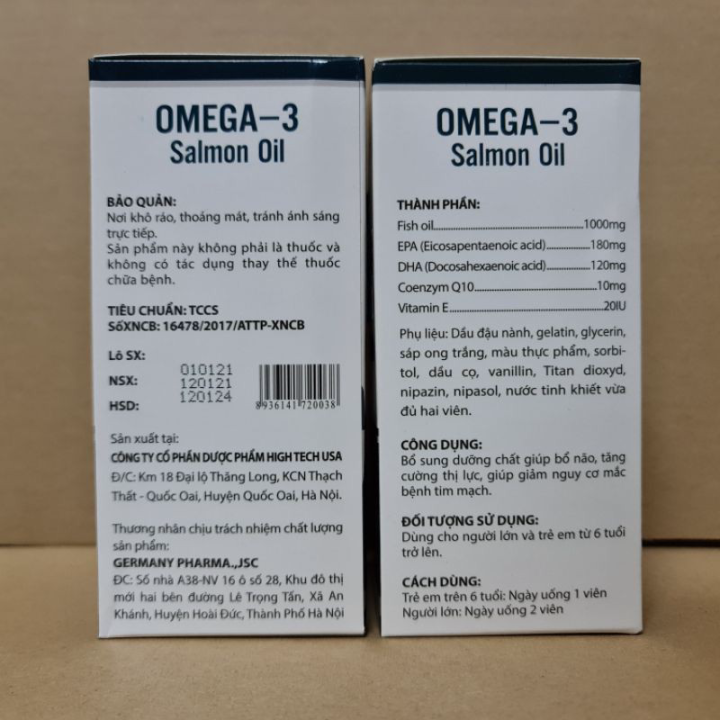 Alaska bổ mắt 3 - Tăng Cường Thị LựcViên dầu cá hồi bổ mắt 3 alaska Salmon oil 1000mg được chiết xuất từ dầu cá hồi tinh khiết đã được lựa chọn và điều chế theo phương pháp hiện đại, không còn tạp chất, kim loại, thủy ngân, nhưng giữ được nguồn dưỡng chất quý giá có trong dầu cá. CÔNG DỤNG: Viên uống dầu cá hồi bổ mắt 3 alaska Salmon oil là thực phẩm chức năng ngăn ngừa lão hóa, tình trạng suy giảm trí nhớ khi về già.- Cung cấp dưỡng chất giúp mắt sáng, khỏe mạnh và chống lại việc mất thị lực do tuổi tác.- Cung cấp những dưỡng chất dành cho sự phát triển của trí não ở trẻ em và người lớn.- Mang lại hiệu quả cho người thường xuyên làm việc dưới áp lực cao, người hay bị căng thẳng, mệt mỏi do làm việc quá sức.Hướng dẫn sử dụng: Trên 12 tuổi: uống 2 viên mỗi ngày sau bữa ăn, có thể dùng uống 1 lần hoặc chia ra 2 lần uống.Trẻ em dưới 12 tuổi: Uống 1 viên vào sau bữa ăn mỗi ngày.Trẻ nhỏ và phụ nữ đang mang thai nên hỏi kỹ ý kiến của bác sỹ trước khi dùng.Sản xuất tại: Công ty cổ phần dược phẩm high tech USA#bổ mắt3 #bổ mắt3alaska #dầu_cásản phẩm rất tốt, chăm sóc sức khỏe bạn và gia đình bạn