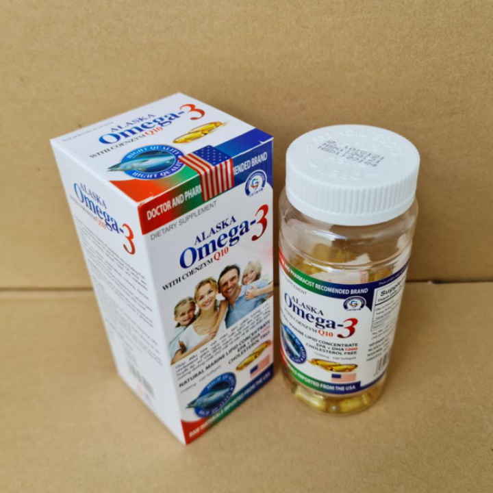 AlaskaGia đình (Hộp 100 viên)Xuất xứ: Việt NamHãng sản xuất: Công ty TNHH US Pharma USA - VIỆT NAMQuy cách đóng gói: Hộp 100 ViênCông dụng- Hỗ trợ tốt với tim mạch và não bộ giúp hỗ trợ tốt với mắt, hạn chế tình trạng khô mắt, mỏi mắt- Bồi bổ sức khỏe, kích thích tiêu hóa, giúp làm đẹp da.Đối tượng sử dụngDùng cho người bị mắc không tim mạch, cao huyết áp, xơ vữa động mạch, tiểu đường- Người bị cận thị, viễn thị, thoái hóa điểm vàng, đục thủy tinh thể, mỏi mắt, khô mắt. Người bị rối loạn tiền đình, thiểu năng tuần hoàn não, suy giảm trí nhớ, các tình trạng lo lắng, hồi hộp, mất ngủCách dùngNguời lớn: 1 3 viên/ lần, ngày 2 3 lần/ngày, uống sau bữa ăn.Trẻ em: 1 2 viên/ lần, ngày 1 2 lần/ngày, uống sau bữa ăn.Xuất xứ: Việt NamNhà sản xuất: Dược phẩm quốc tê USA