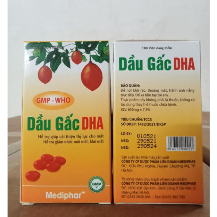 Viên uống Dầu Gấc DHA giúp cải thiện thị lực, giảm nhức mỏi mắt, khô mắt Hộp 100 viên nang