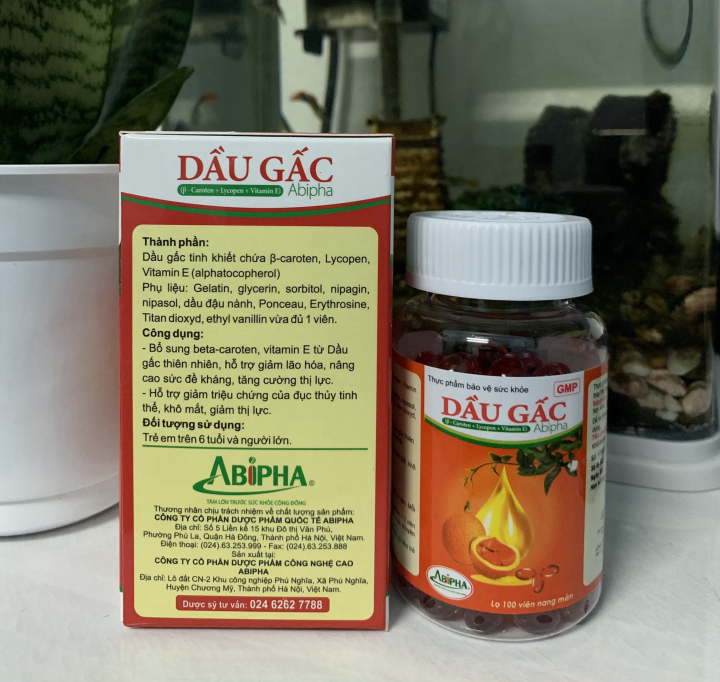 (Chính Hãng) Dầu Gấc Abipha - Bổ Sung Vitamin A - Hỗ Trợ Cho Người Thị Lực Kém Và Quáng Gà lọ 100 viên chính hãng
