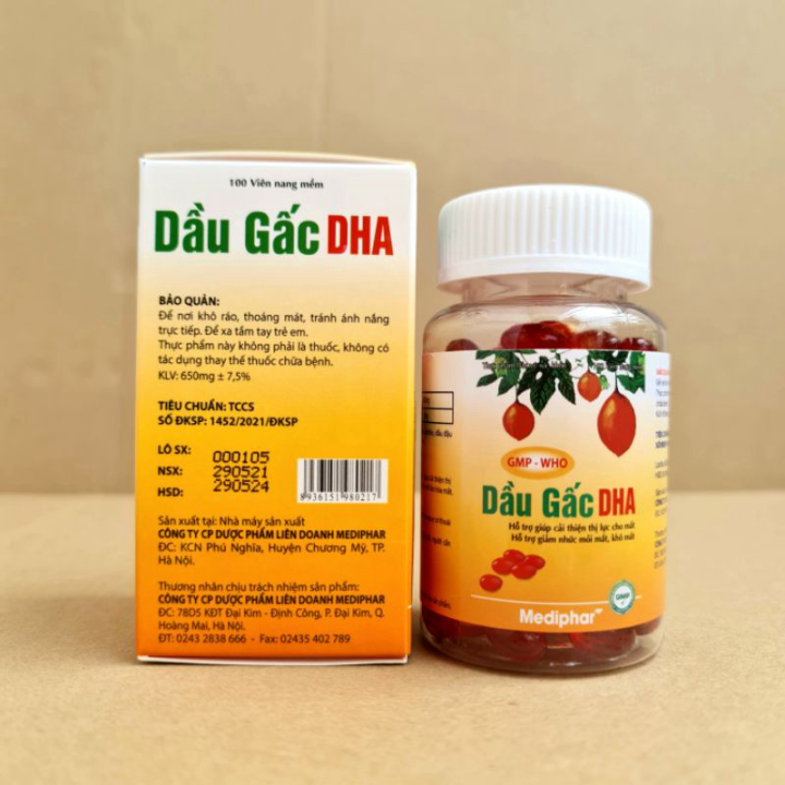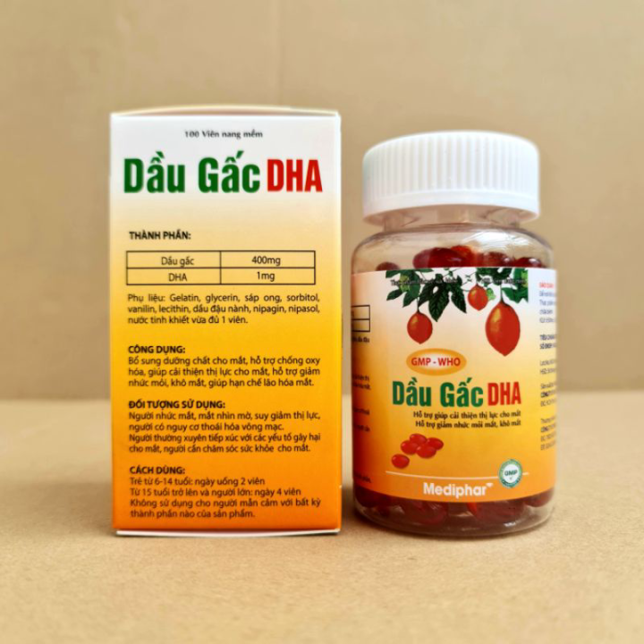 Viên uống Dầu Gấc DHA giúp cải thiện thị lực, giảm nhức mỏi mắt, khô mắt - Hộp 100 viên nang