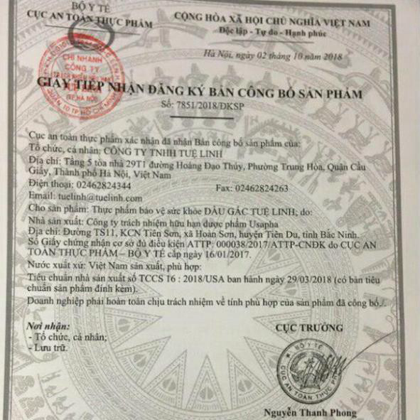 (chính hãng) (Chính Hãng) Dầu gấc tuệ linh - giúp sáng mắt đẹp da, sản phẩm chất lượng, đảm bảo an toàn sức khỏe người sử dụng, cam kết hàng giống hình