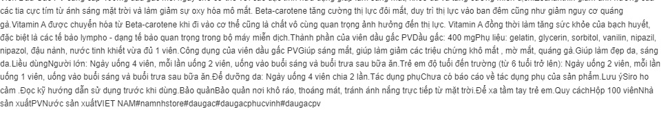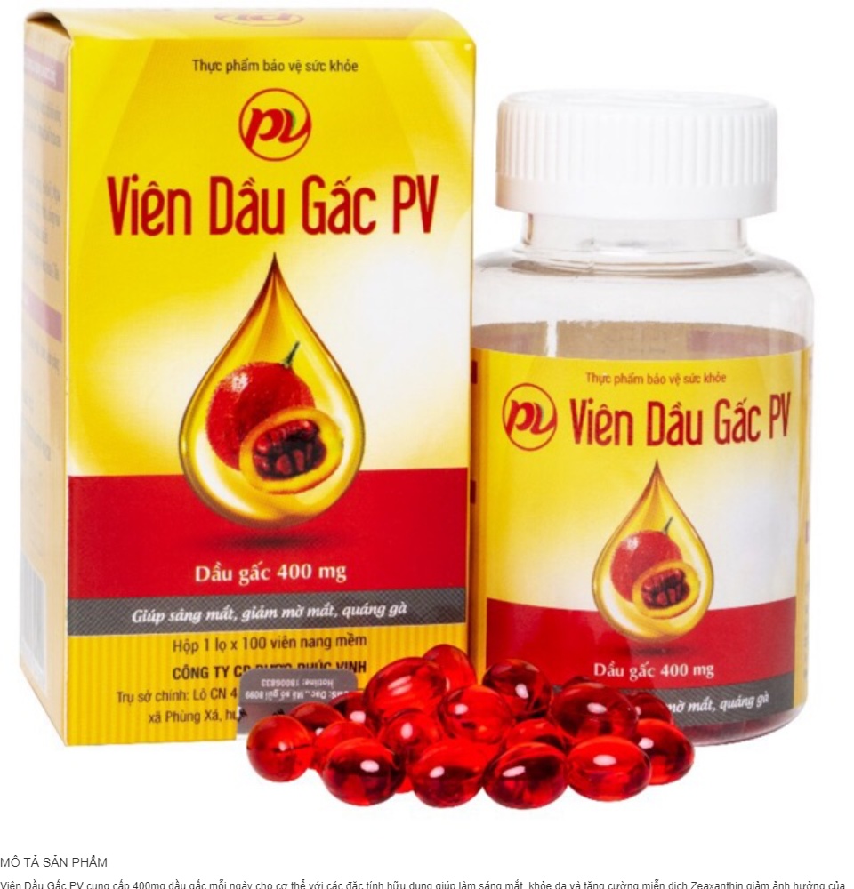 Viên dầu gấc PV Giúp sáng mắt, giúp làm giảm các triệu chứng khô mắt , mờ mắt, quáng gà.