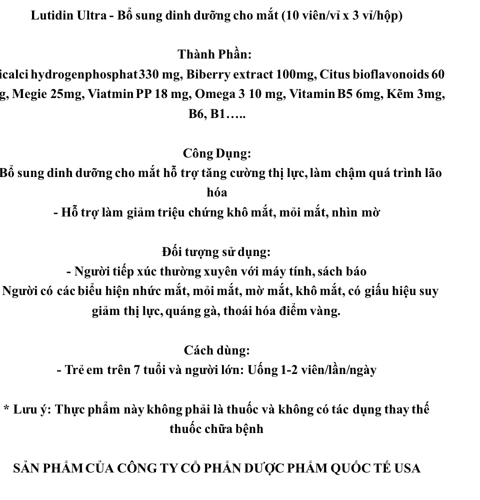 Lutidin Ultra - Bổ sung dinh dưỡng cho mắt (10 viê...