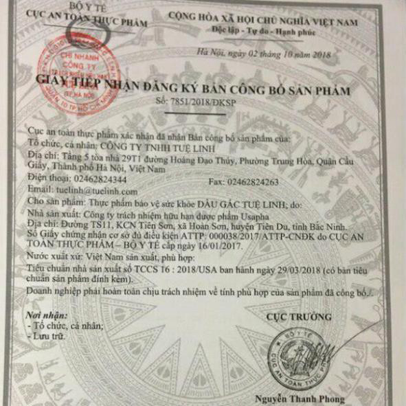 (Chính Hãng) Dầu gấc tuệ linh - giúp sáng mắt đẹp da, sản phẩm chất lượng, đảm bảo an toàn sức khỏe người sử dụng, cam kết hàng giống hình